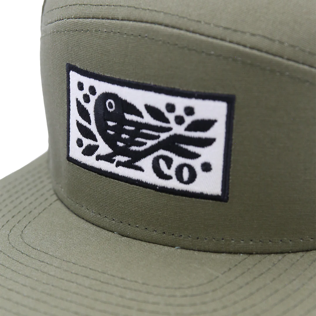 Effortlessly stylish with a subtle nature-inspired design, the Sunday Lounge X Corvus Flat-Bill Cap is a must-have for those who appreciate minimalistic charm. The clean embroidered bird logo on the front adds an organic touch, while the olive-green fabric gives the cap a timeless look. The flat bill features a hidden corduroy underside, offering a soft texture contrast that elevates the overall aesthetic. With an adjustable strap and sturdy build, this cap is designed for both comfort and longevity. Perfect for any adventure, this cap combines modern simplicity with a nod to classic craftsmanship.