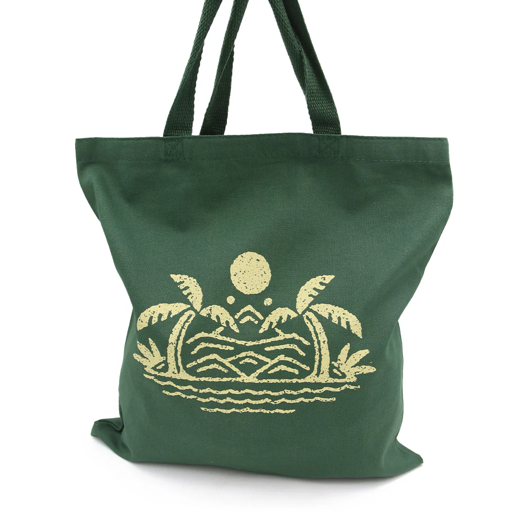 Celebrate the natural beauty and vibrant culture of Indonesia with our Thousand Islands Tote Bag. Designed with care and purpose, this sturdy green tote features an intricate print inspired by Indonesia's iconic Thousand Islands, embodying the harmony of lush landscapes and serene waters.